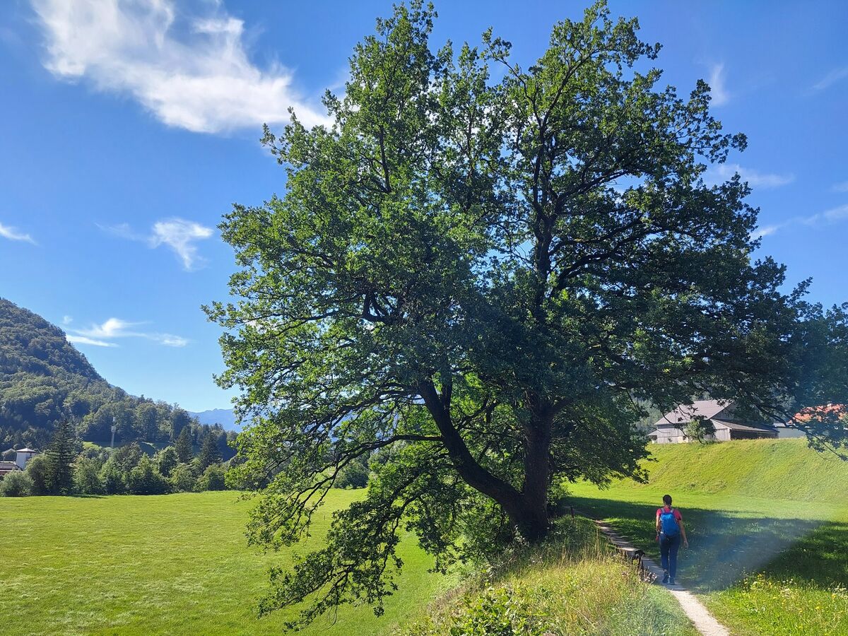 In the morning, take the train to Bad Ischl. This pretty spa town may not be located on a lake, but it is situated on the turquoise-green waters of the Traun River, where today's stage along the Soleweg trail begins on the esplanade. Here, you follow the course of the brine pipeline, the oldest active pipeline in the world, which transports brine from the Hallstatt salt mine to the salt works in Ebensee. Passing the valley station of the Katrin cable car and the bronze statue of the emperor hunting, you hike along the popular hiking trail to the small village of Lauffen. The name derives from the rapids that the salt shippers once had to overcome and for which they asked the Madonna for protection from misfortune. Incidentally, this is also where the comedy ‘Weißes Rössl’ was set. After Lauffen, the valley floor widens and the Kalmberge mountains rise one after the other, followed by the mighty Dachstein mountains. After Weißenbach, the mountain panorama is particularly impressive with the ‘Ewige Wand’ (Eternal Wall) on the left, the mighty ridge of the Hoher Sarstein and the Krippenstein, over 2000 metres high, in the distance. You now reach the former woodworkers' settlement of Bad Goisern. It stretches for several kilometres to the northern end of Lake Hallstatt. The village was founded because the rich local timber resources were needed to heat the brewing vats in Hallstatt.